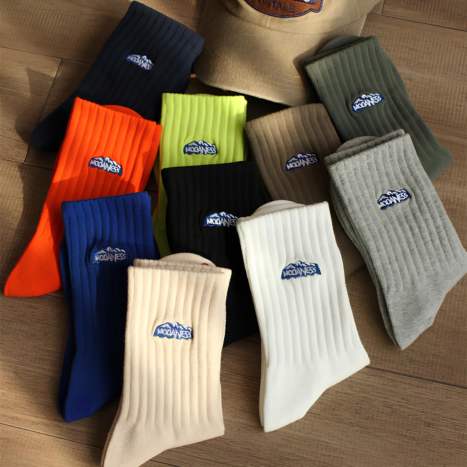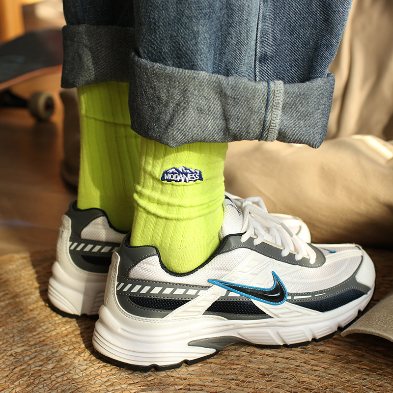 『老皮衣櫥』PSOC01 山系雪山刺繡棉襪 ins風籃球運動襪 透氣吸汗中筒襪 山系 運動襪 百搭襪子