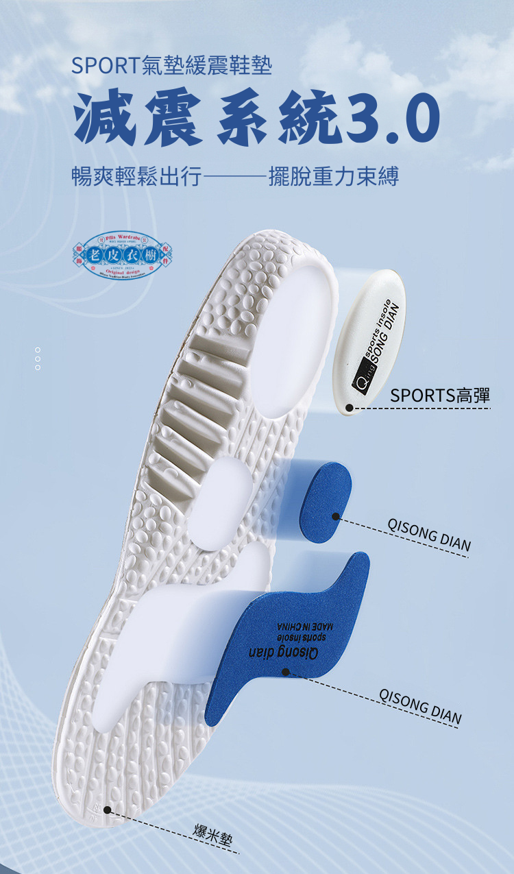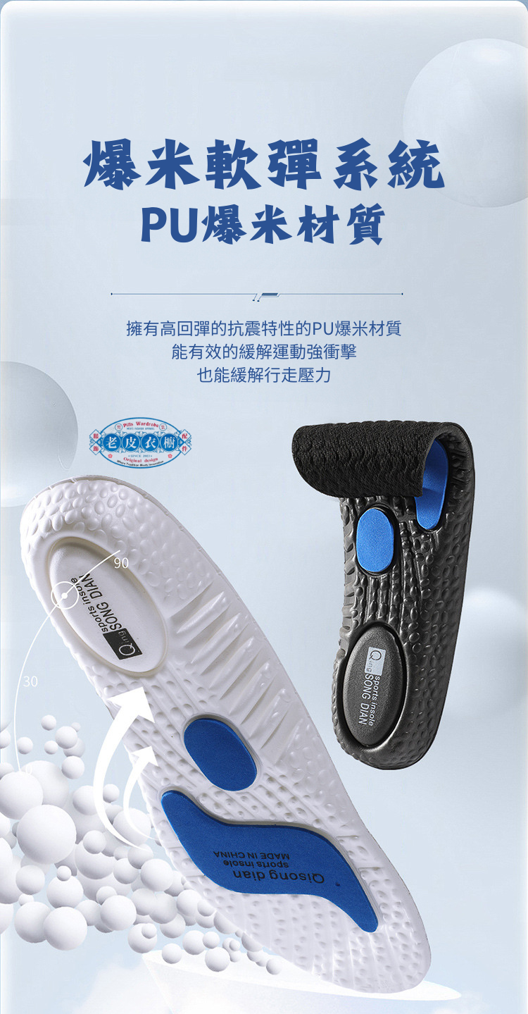 『老皮衣櫥』5118運動鞋墊 高彈性 減震 吸汗 防臭 舒適 爆米EVA 球鞋墊 zoom 久站不累神器 高能量減震鞋墊