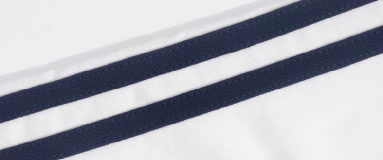插肩袖的設計與半包領條的加固工作,不僅增強了衣服的結構強度,也保證了在反復掛曬和穿脫過程中領口不變形。此外,印花表層特別添加了膚感膠,不僅使圖案更加立體和鮮明,也保證了印花的耐洗不掉色和親膚柔軟的特性。