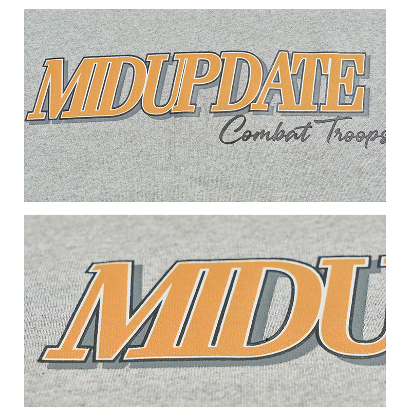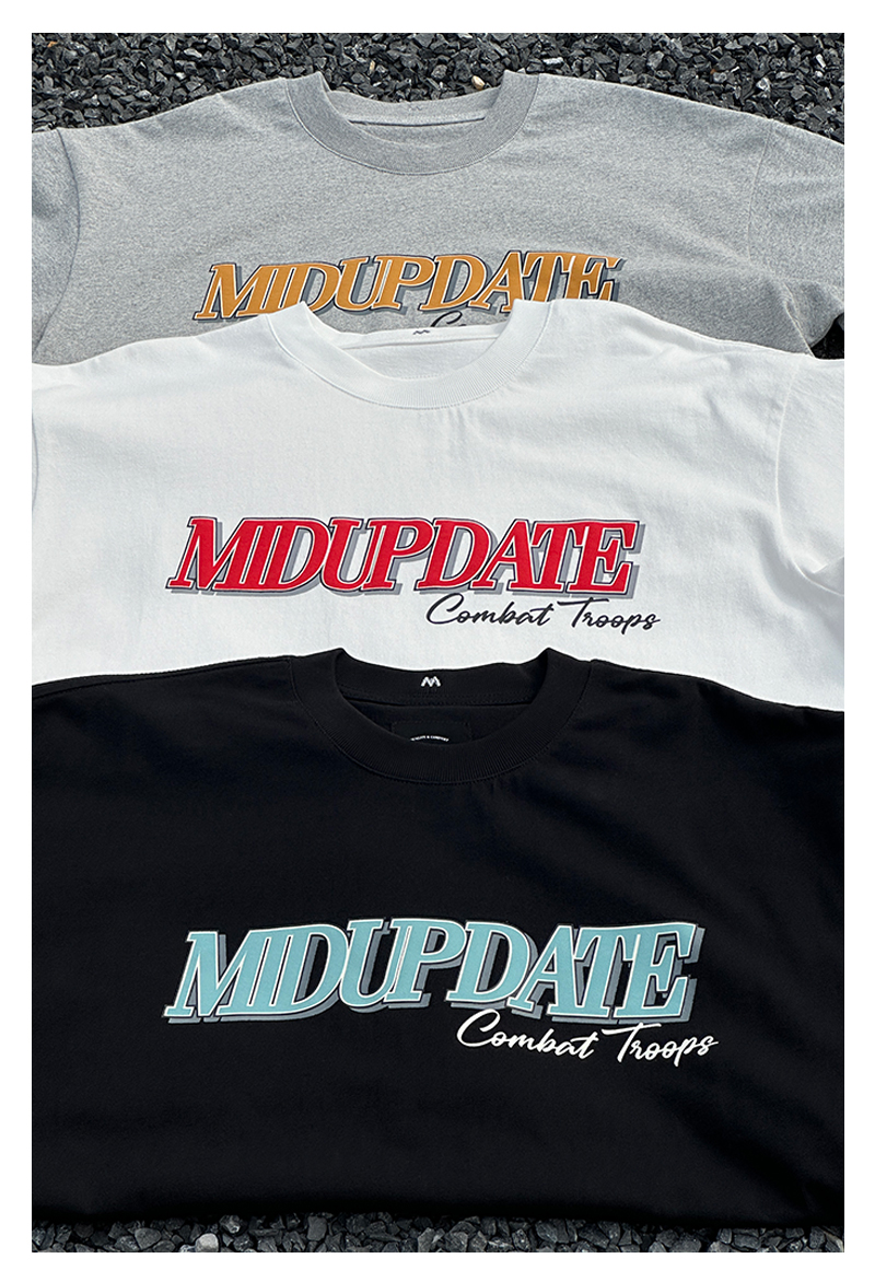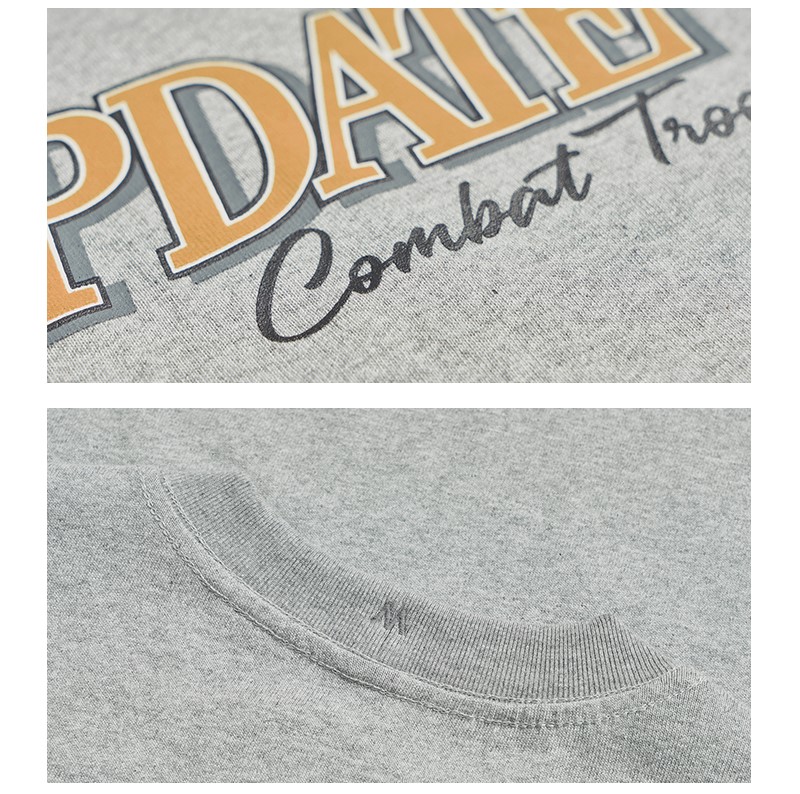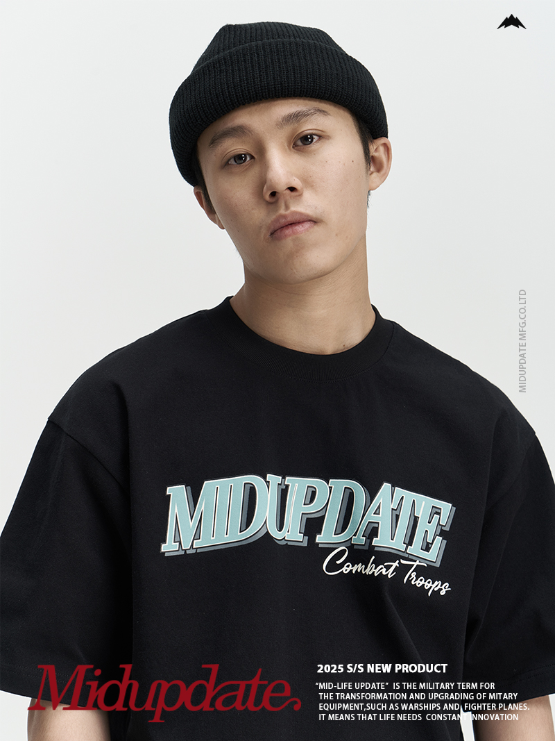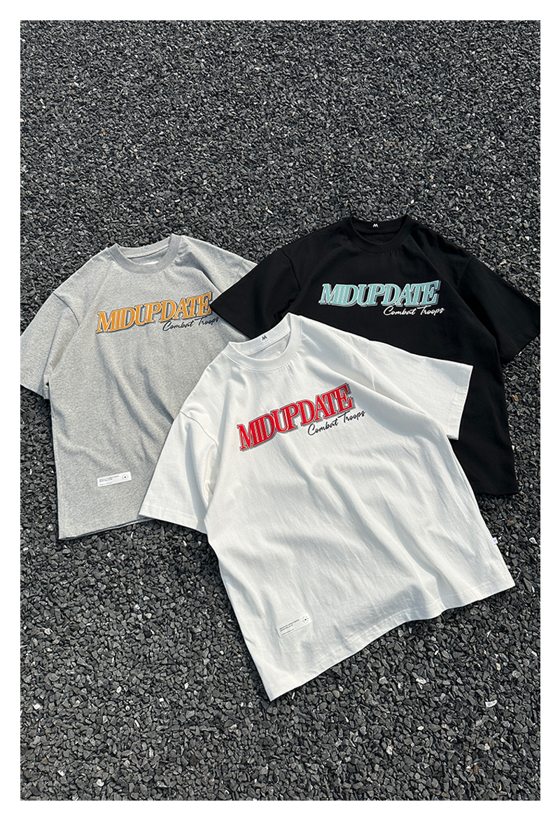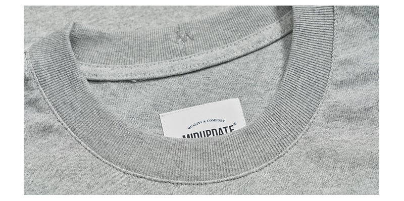短袖T恤整體採用十六支平紋100%棉布料 。克重達260G/M2,,布料都是工廠訂製布料,有別與市面上的常規布料。整衣布料進行了預縮水處理跟後整固色處理,褲子整體不易變形。服飾胸前印花採用絨面發泡印花,整體落色自然。後領加入品牌獨有【M】字打棗刺繡。