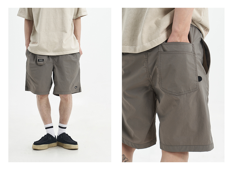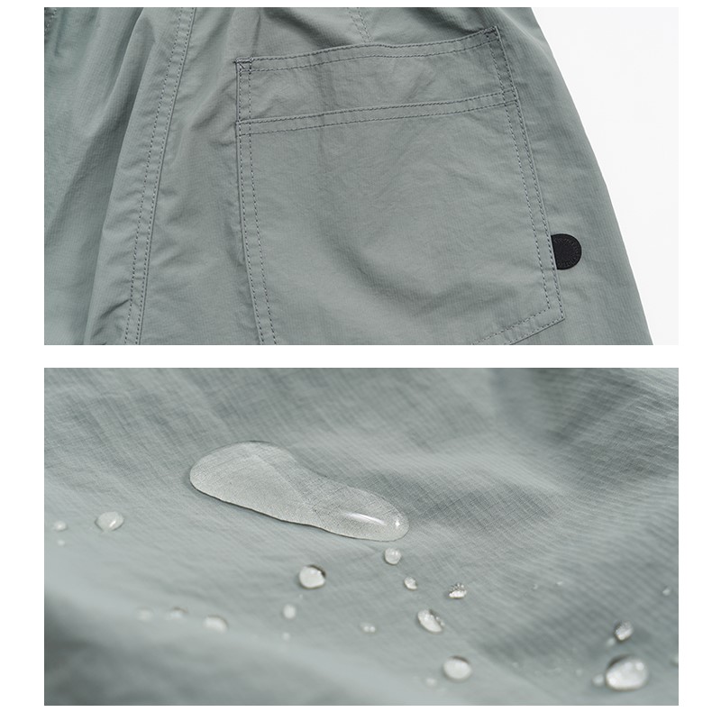沙灘褲整體採用100%尼龍的進口速乾布料 。克重120G,布料都是工廠訂製布料,有別與市面上的常規布料。整衣布料進行了預縮水處理跟後整固色處理,褲子整體不易變形。