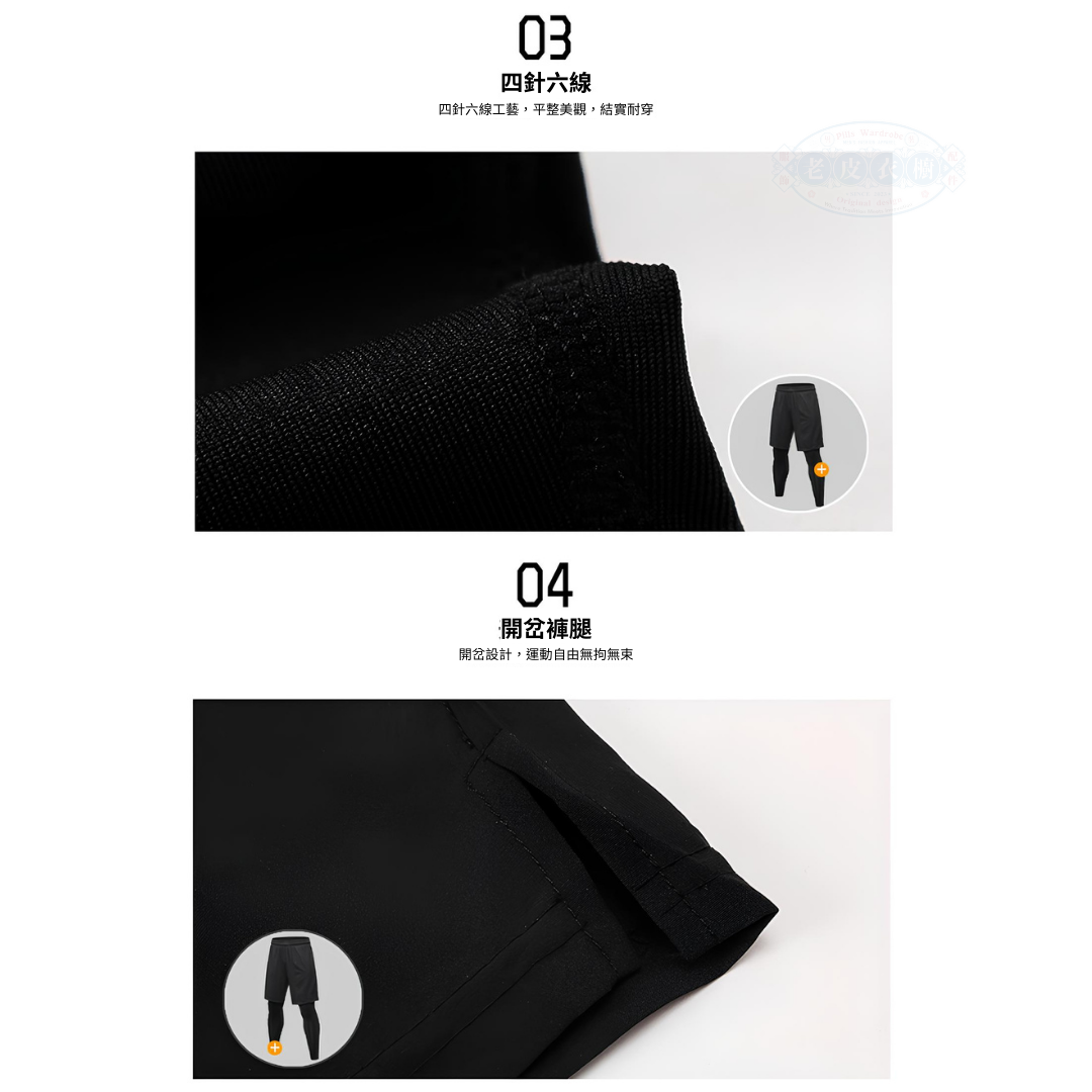 『老皮衣櫥』PS7010 運動PRO緊身假兩件長褲 3D立體剪裁 籃球 慢跑 訓練 健身 排汗 運動長褲 束褲 緊身褲