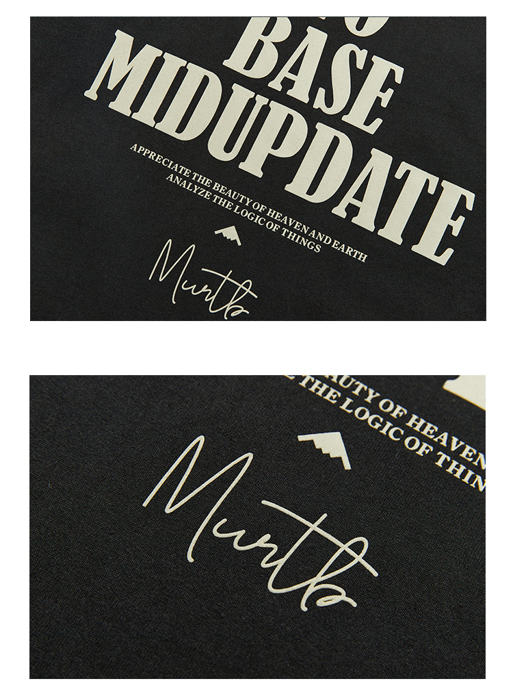 100%棉布料,客製化重磅10支平紋純棉材質,310g面料親膚柔軟,紗線與顏色上的挑選經過反覆調試,織法緊密,布面紋路清晰。後背印花採用了激光絨面壓絨印花技術,使印花圖案紋路清晰。壓絨技術質感更佳,使印花立體。