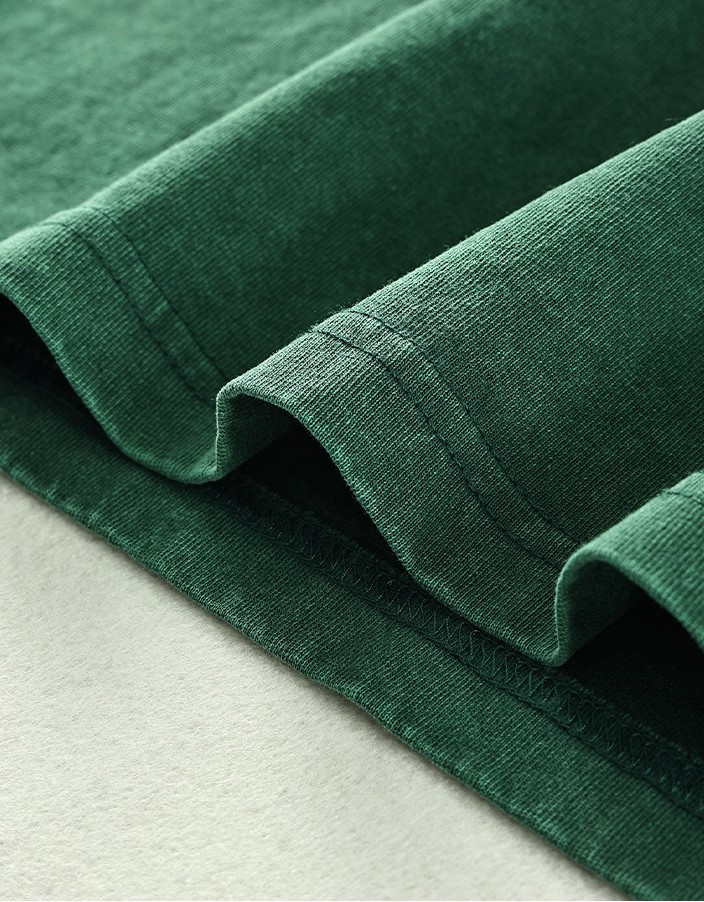 產品的製作工藝是其一大亮點。這款T恤採用了特殊的蠟染工藝及水洗處理,使得整體顏色自然均勻,面料經過細緻的洗水過程後,呈現出色澤柔和的外觀,同時不易掉色或縮水,增加了產品的耐用性。水洗工藝使衣物有輕微的褪色效果,這是蠟染處理過程中的正常現象,也賦予了這款T恤復古獨特的風格。