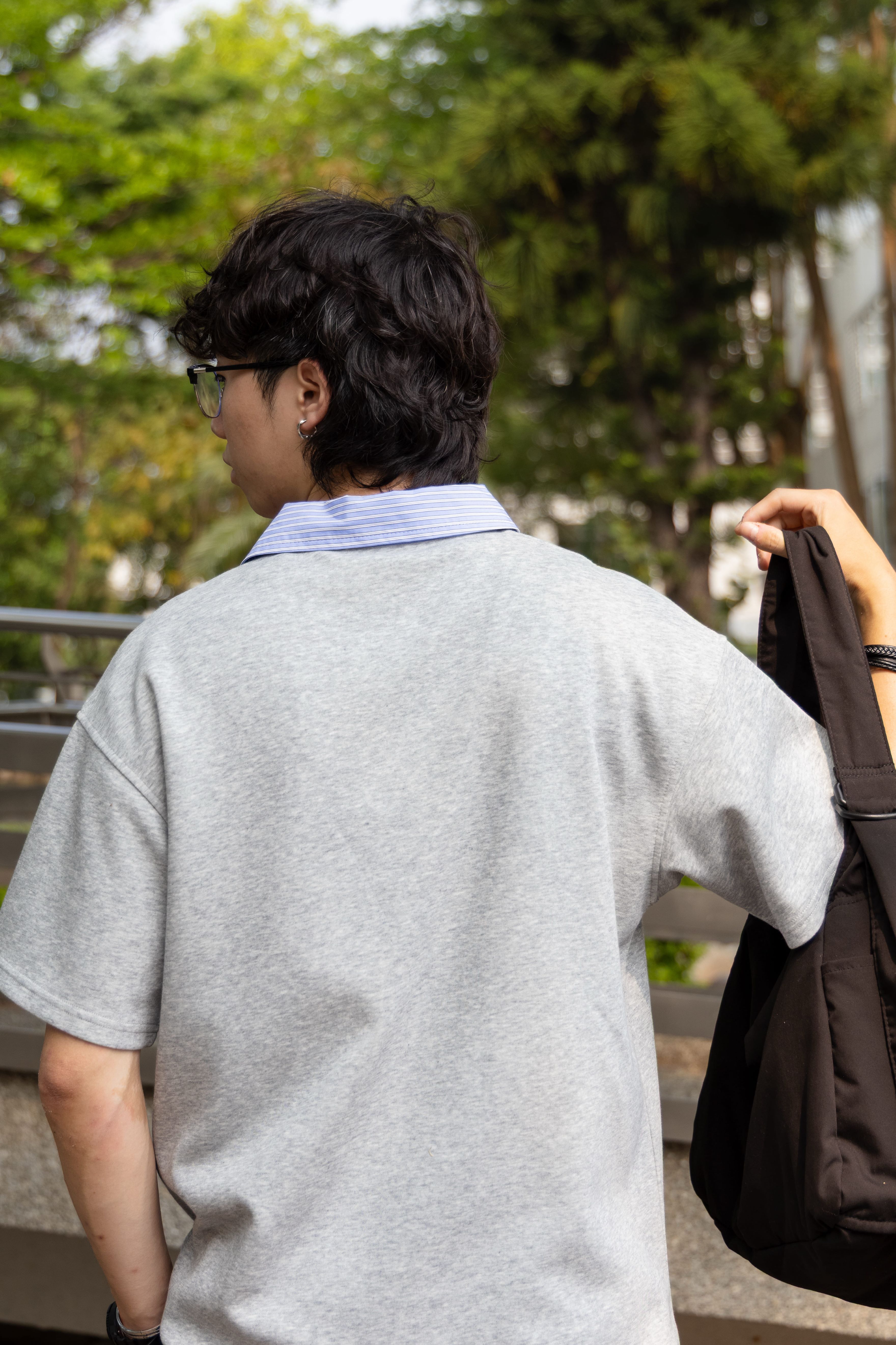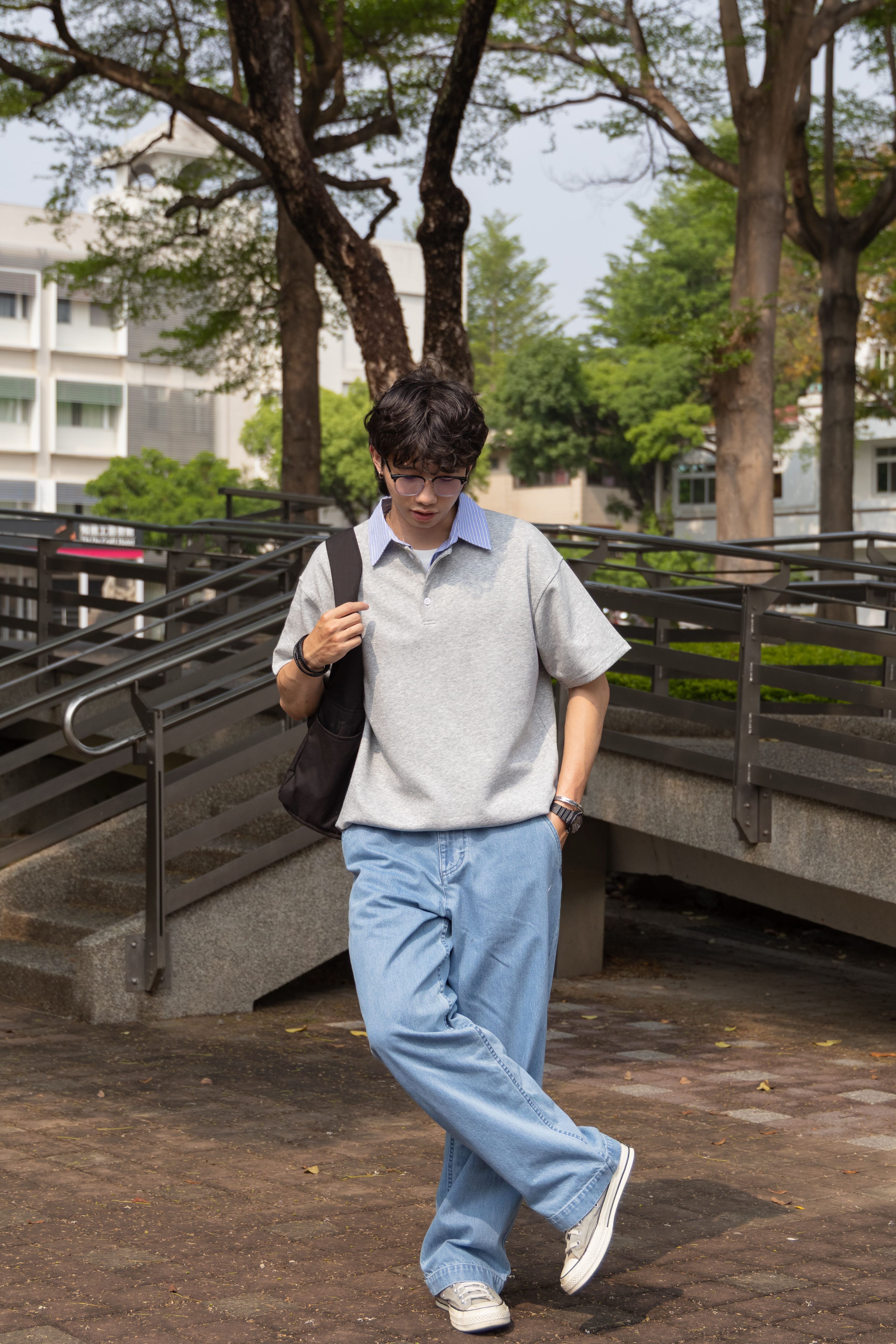 ➤ Polo翻領設計保留微正式質感,結合假兩件休閒元素,搭配西褲可應對半正式場合,換上牛仔褲秒變咖啡廳韓系歐巴。