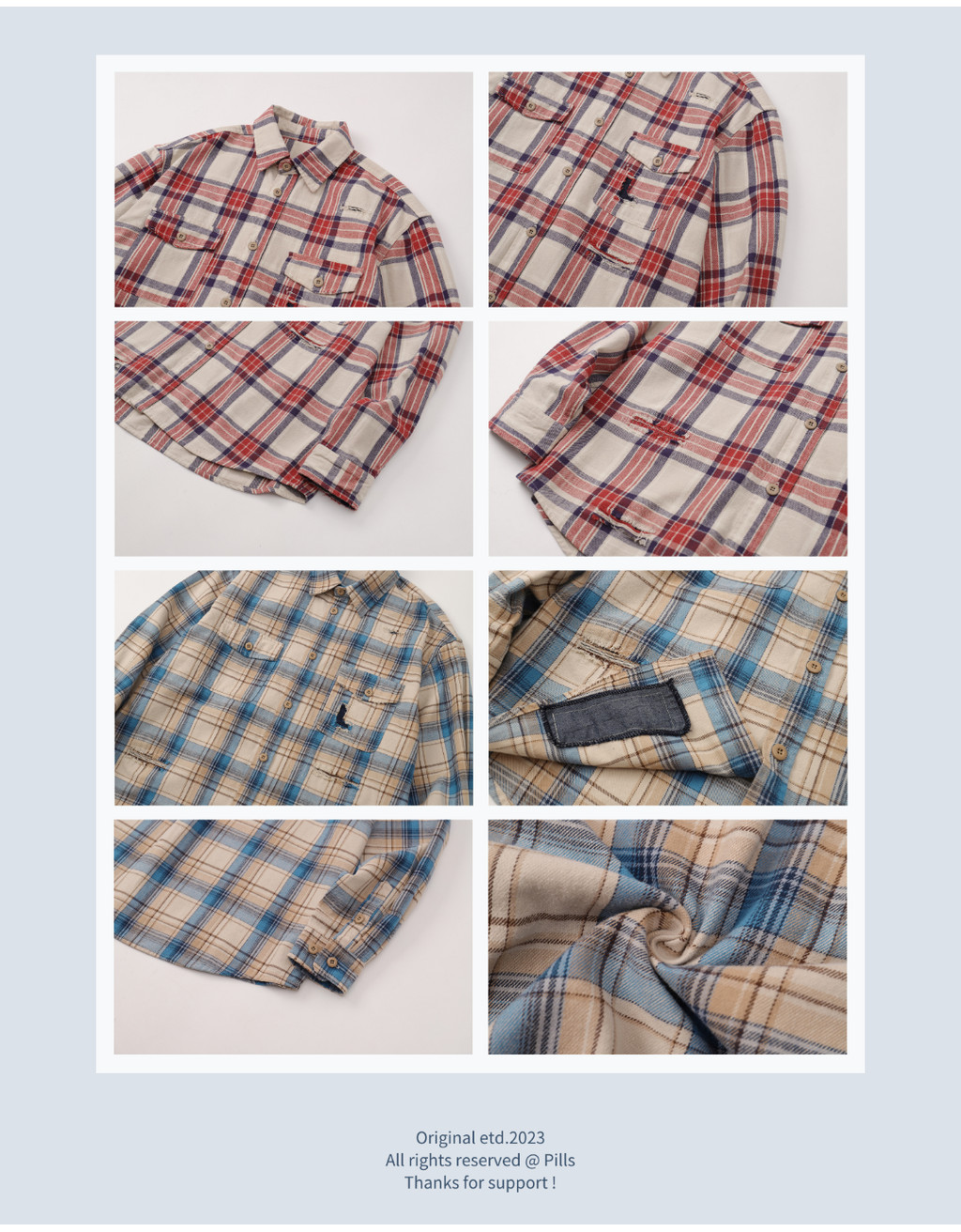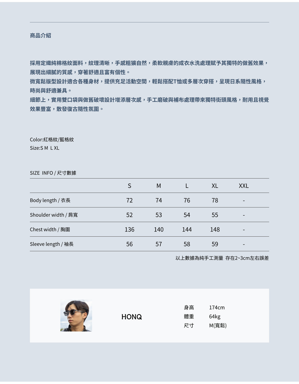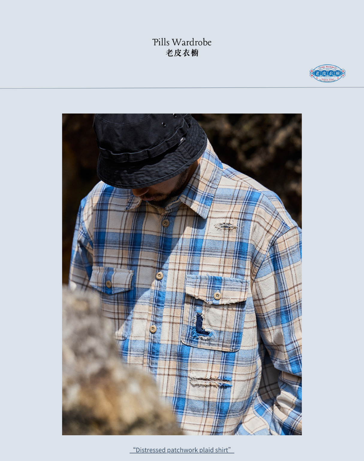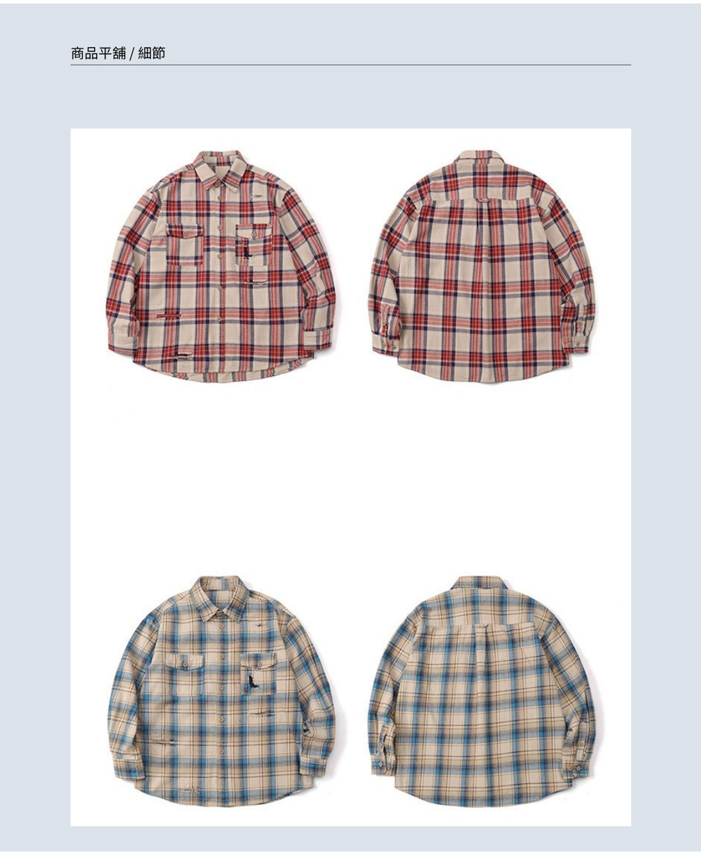 『老皮衣櫥』PS408 日系做舊破壞補丁格紋襯衫 格紋襯衫 男生襯衫 穿搭襯衫 襯衫 格子襯衫 余文樂