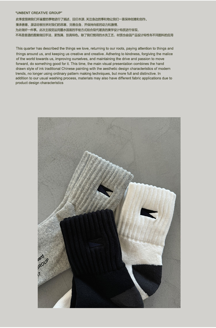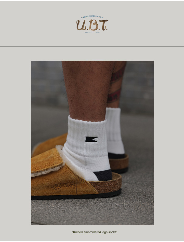 商品資訊:UNBENT 刺繡旗幟logo純棉透氣運動中筒襪