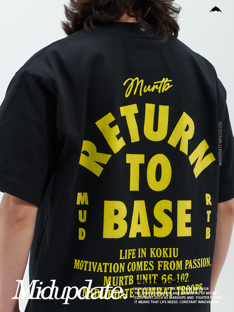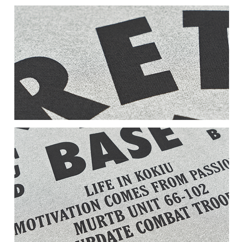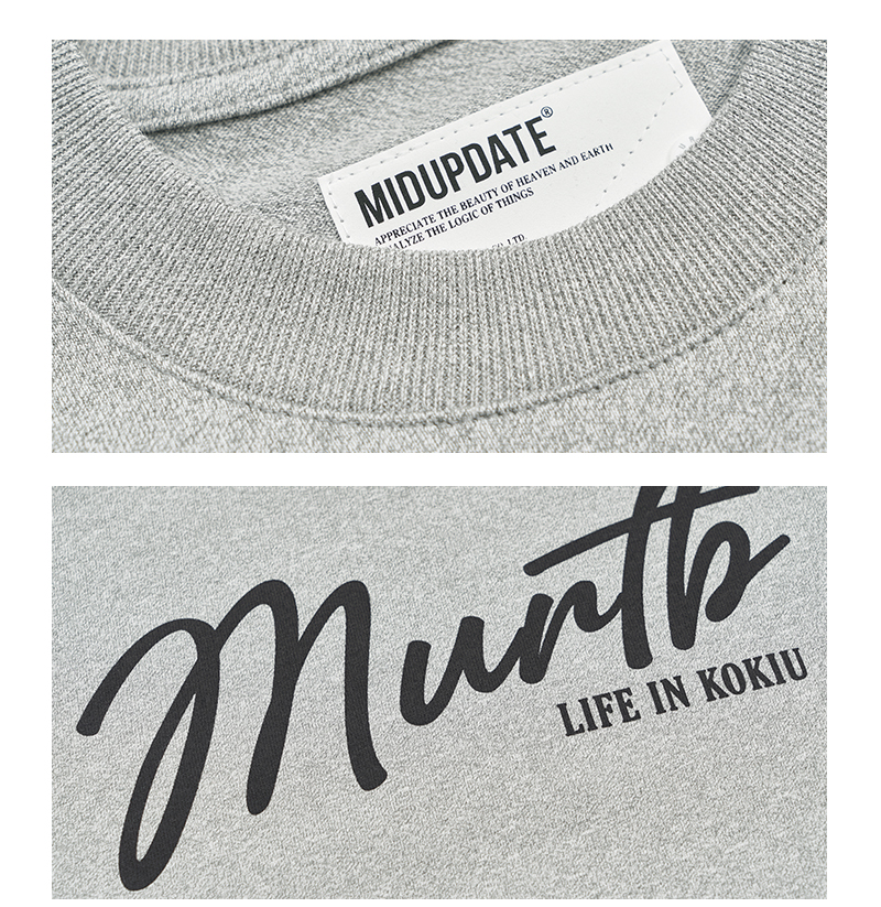 服飾整體落色自然。前後幅標語印花使用環保膠漿,撞色印花映入眼簾,加強視覺感。後領加入品牌獨有【M】字打棗刺繡。