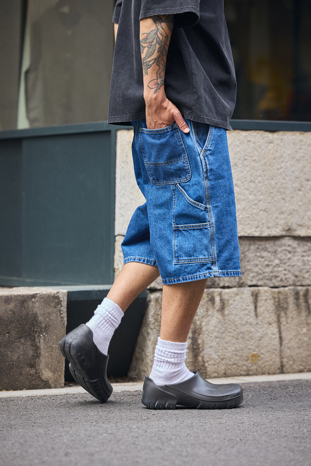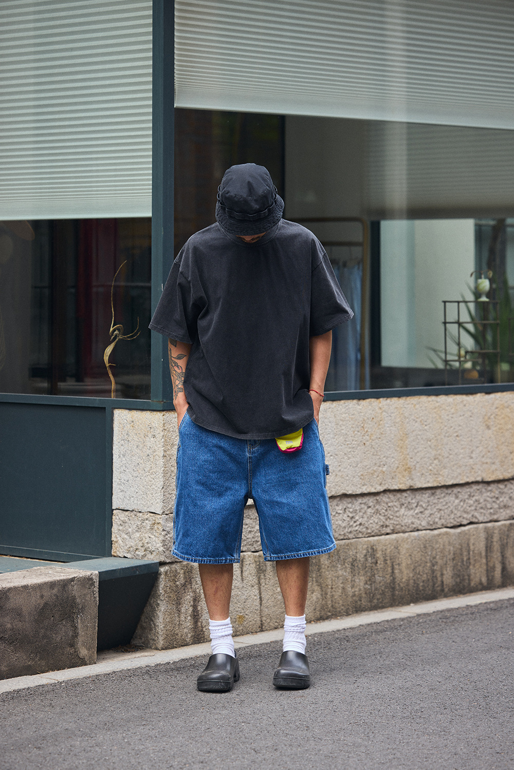 採用長絨棉,質地柔軟,纖維細長,強度高。成衣製作經過繁複的洗水過程,顏色經過石磨底色、預縮、脫色磨邊、等複雜工序,整件牛仔褲呈現特殊歲月感透過水洗呈現長期使用後的自然落色細節,最終形成柔軟易穿的手感。