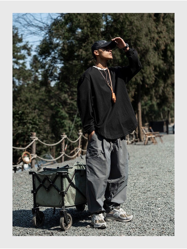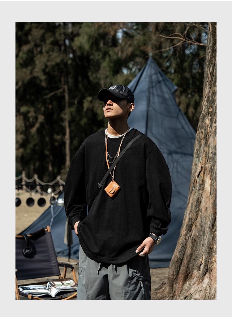 商品資訊:現貨 350克 重磅 日系 圓領 寬鬆 落肩版型 長袖Tee