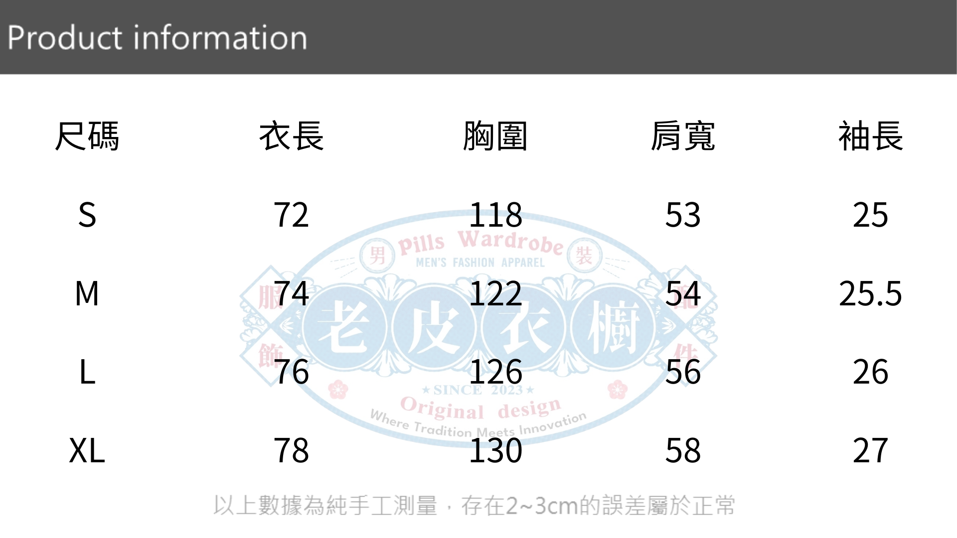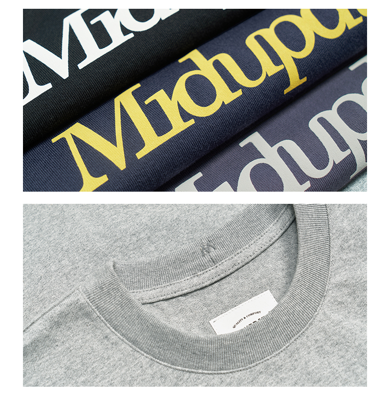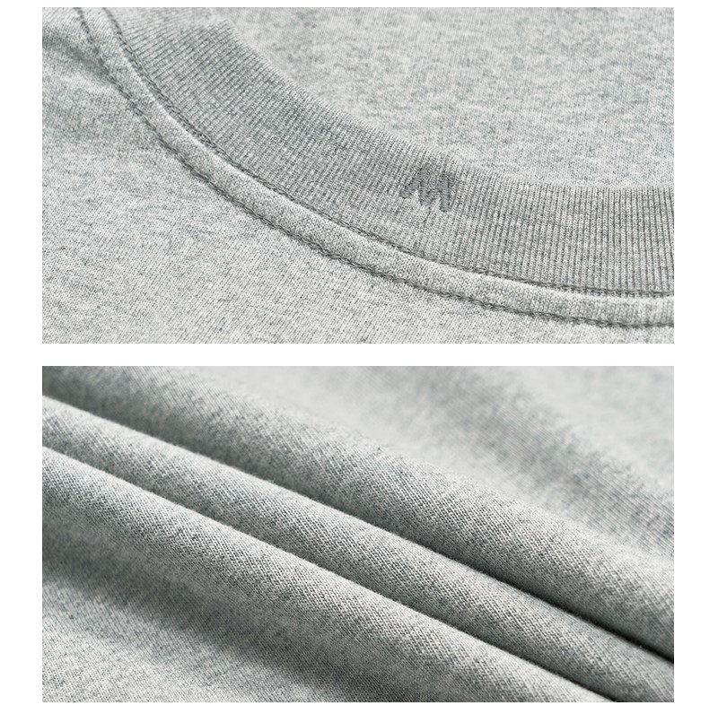 短袖T恤整體採用十六支平紋100%棉布料 。克重達260G,布料都是訂製布料,有別與市面上的常規布料。整衣布料進行了預縮水處理跟後整固色處理,整體不易變形。服飾整體印花採用環保絨面發泡印花,整體落色自然。後領加入品牌獨有【M】字打棗刺繡。