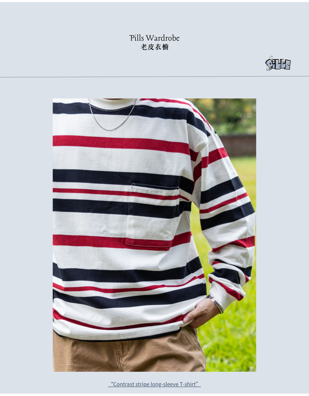 『老皮衣櫥』PST040 多色 撞色條紋長袖T恤 條紋T 長袖 條紋長袖 cityboy 條紋T 口袋