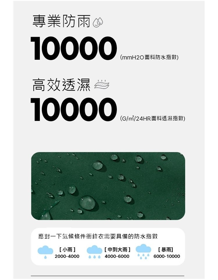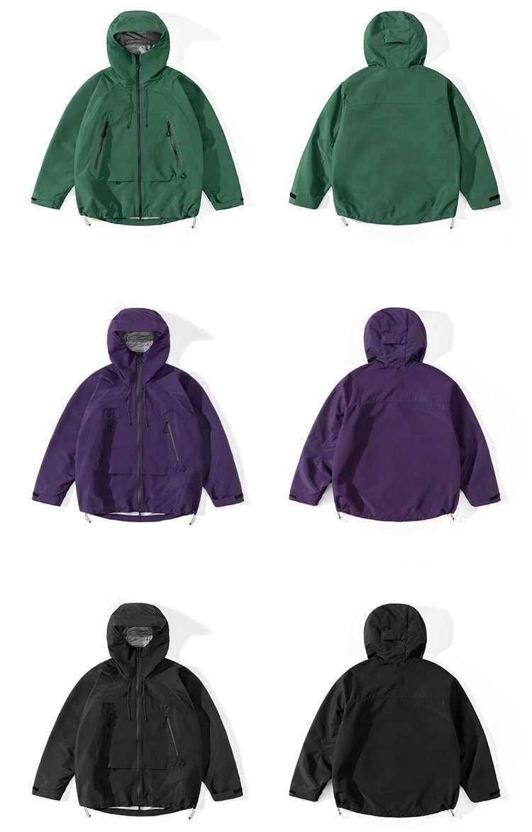 除了優質的面料選用,這款衝鋒外套還內含一層TPU防水透氣膜,提供了高達10000mmH2O的防水指數,這意味著即使在暴雨環境下也能保持乾爽。同時,其透濕指數也達到了10000g/m²/24H,確保了外套的透氣性,即使長時間穿著也不會感到悶熱。這種雙重防護使外套在戶外活動中具有極強的實用性,無論面對潮濕、寒冷還是多變的天氣,都能應對自如。