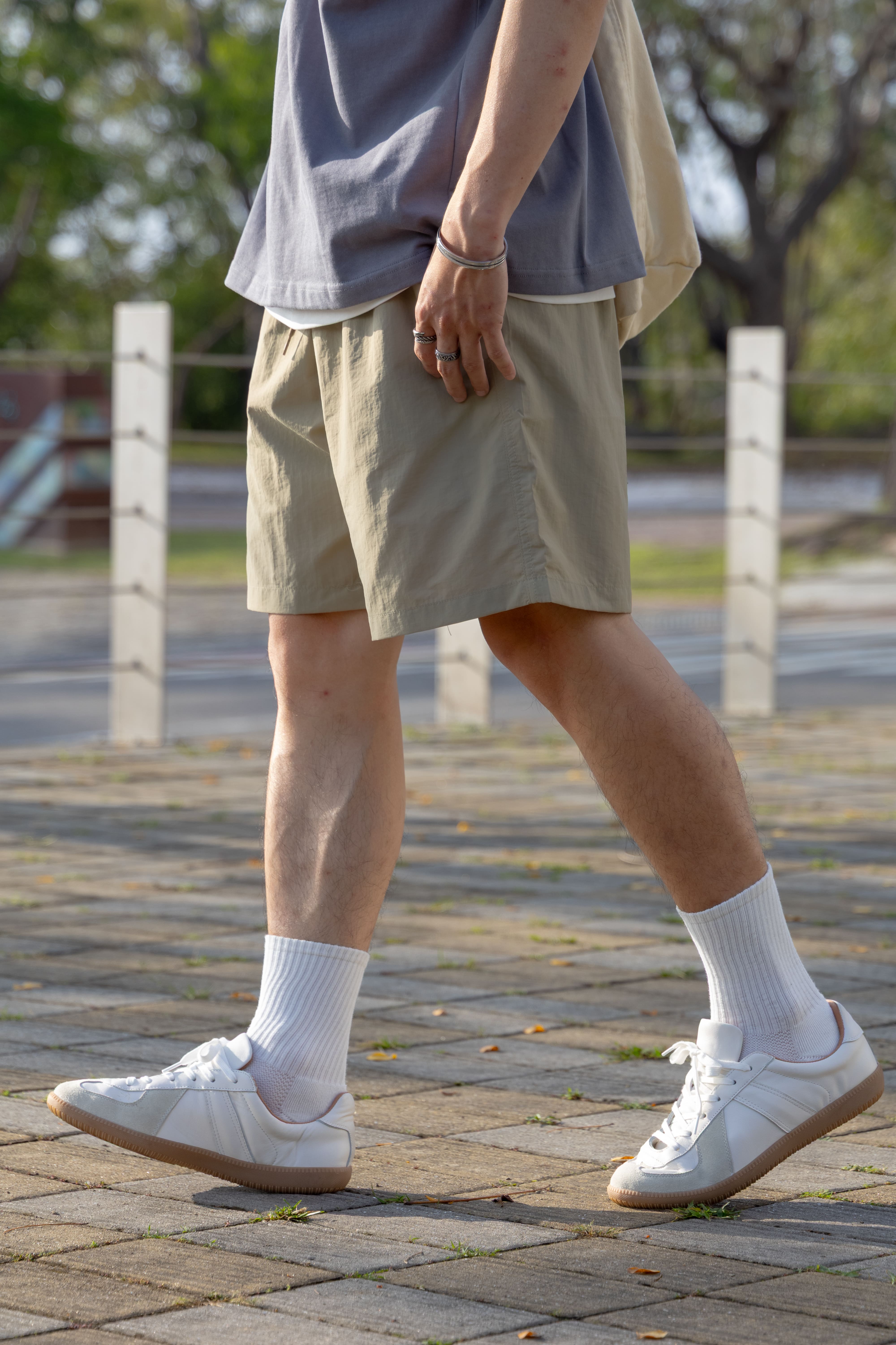 在機能性方面,這款短褲具有吸汗速乾的特性,能夠迅速吸收汗水並揮發,保持肌膚乾爽舒適,特別適合高溫天氣或需要長時間活動的場合。此外,防水透氣的特性使得短褲在突遇小雨或水花飛濺時,也能有效阻擋濕氣,保持乾爽,提升穿著的實用性與舒適度。