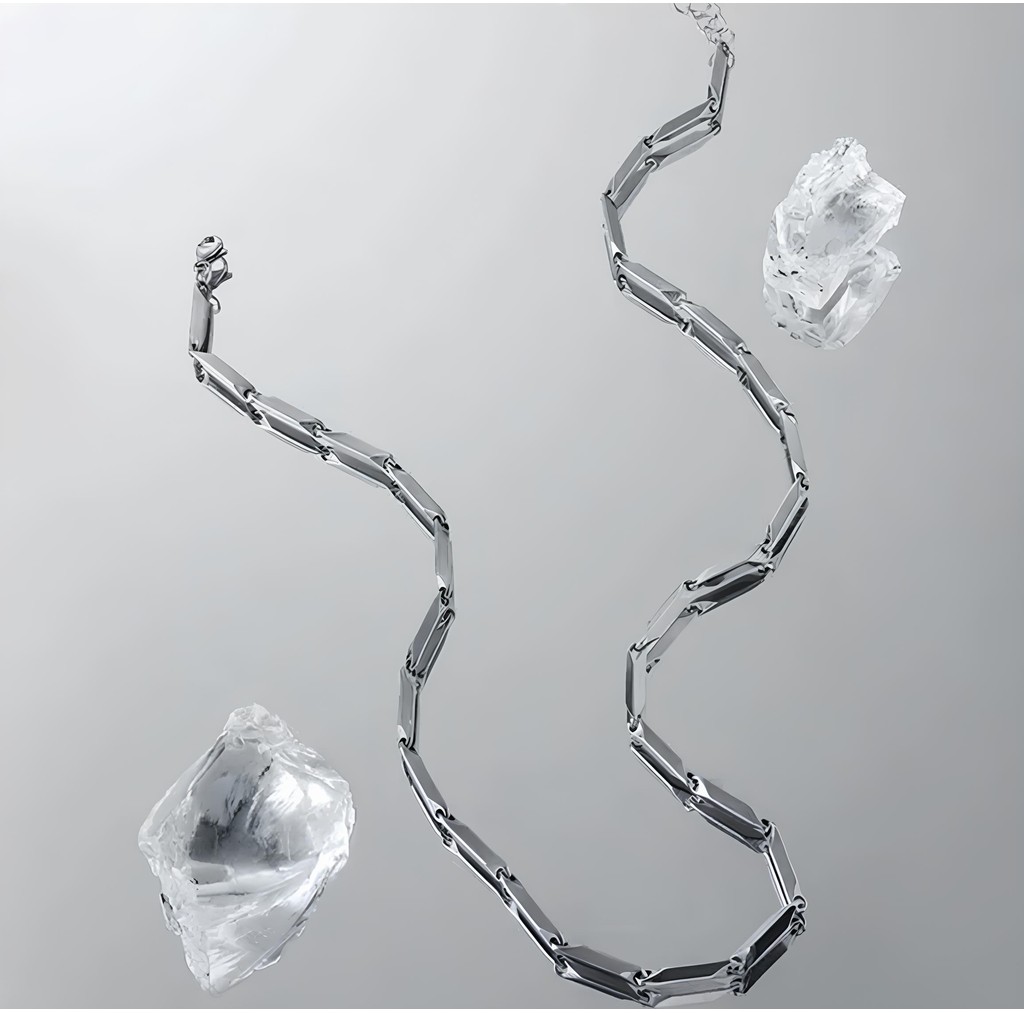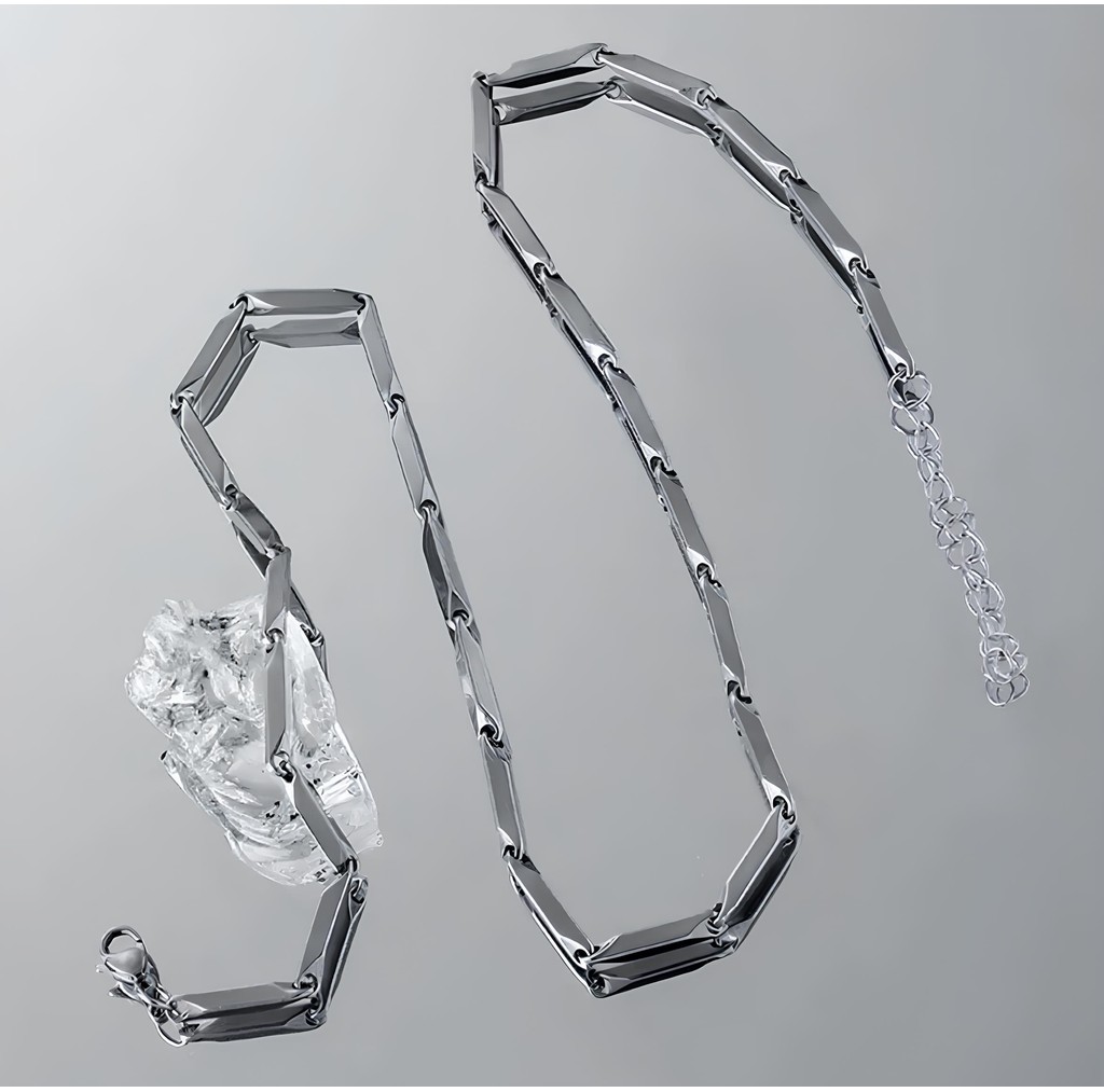 『老皮衣櫥』PSBMBNC 菱形 純正鈦鋼 竹節鍊 項鍊 男士 高級感男 潮男 配飾 鎖骨鍊 百搭 飾品 不褪色 不過敏
