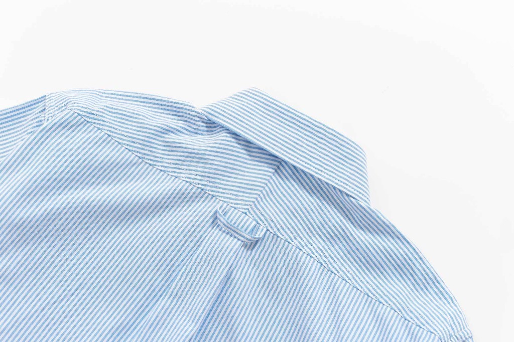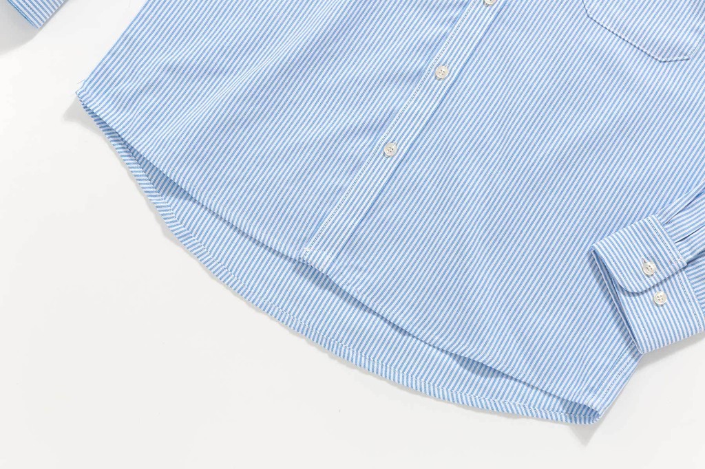 設計上,襯衫採用了落肩設計,增加了舒適度和隨意感。寬鬆的版型不僅適合不同身形的穿著者,還能在日常活動中提供足夠的活動空間,無論是單穿還是內搭,都能展現出簡約大方的風格。經過多次洗水工藝處理後,襯衫的面料具有極高的穩定性,即使經過反覆洗滌,也能保持原有的版型與質感,不易變形。