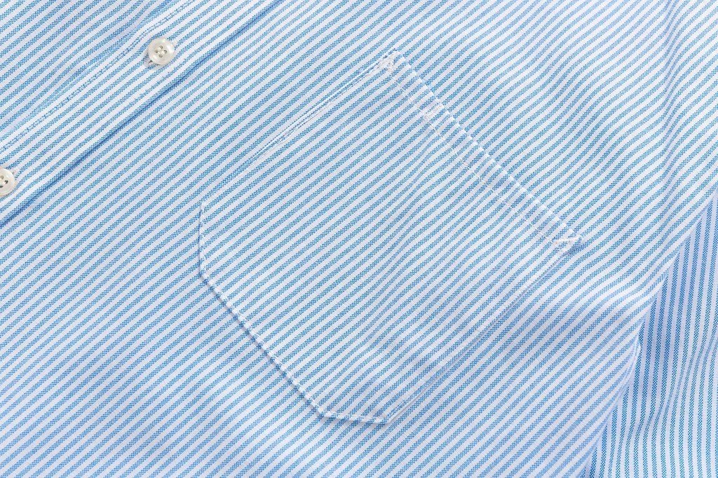 這款落肩襯衫,採用了高密加厚的牛津紡面料,具備挺括有型的特性,同時手感柔軟,穿著舒適。牛津紡面料以其耐用性和質感著稱,特別適合工裝風格的服飾製作。這款襯衫經過特殊的做舊洗水處理,面料在經過處理後,呈現出一種低調的復古感,色彩更顯自然,質感也更加柔和。這種設計不僅提升了襯衫的個性風格,還賦予其更高的可穿性,讓穿著者無論在正式場合還是休閒時刻都能輕鬆駕馭。