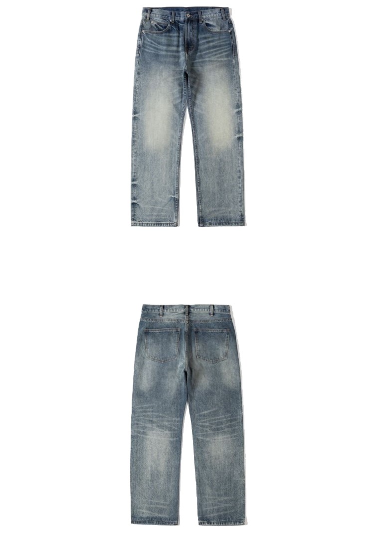 商品資訊:日系復古重工石墨水洗直筒牛仔褲