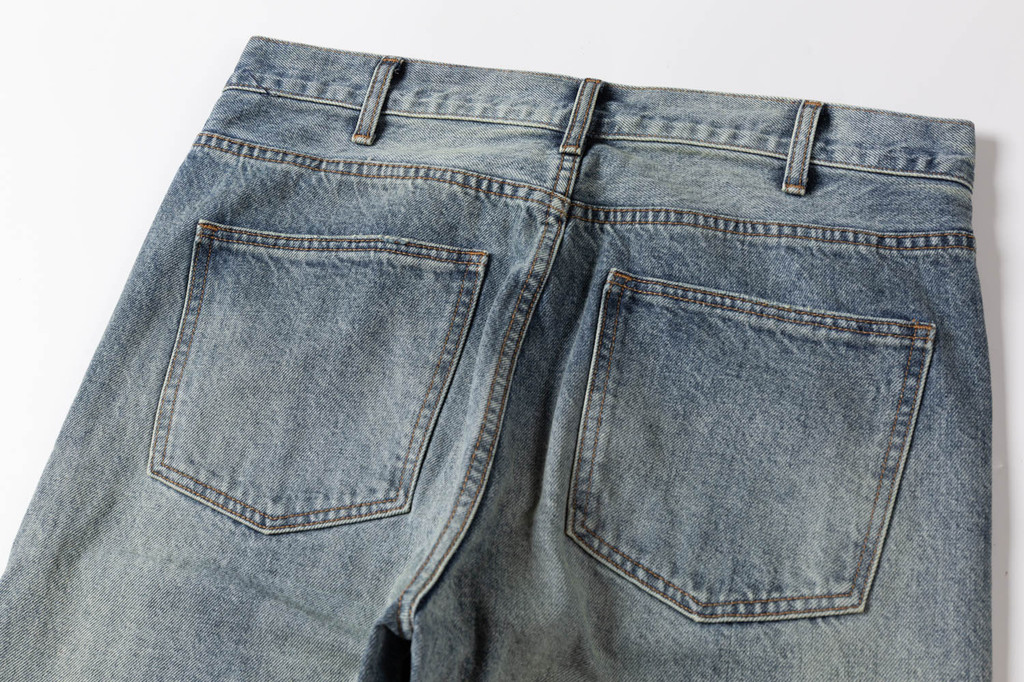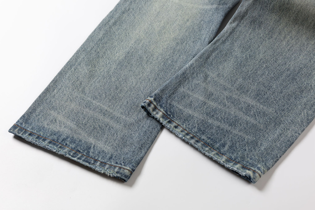 使用14盎司的重質牛仔布,這款牛仔褲堅固耐用,適合各種日常活動。其特色的石墨水洗工藝賦予了面料獨有的視覺效果,使每條褲子都呈現出獨一無二的復古風格,色彩隨著時間的推移而逐漸形成更多層次的深淺變化。