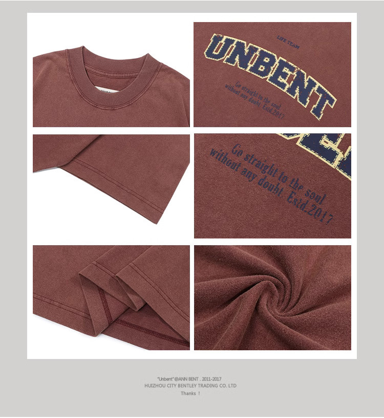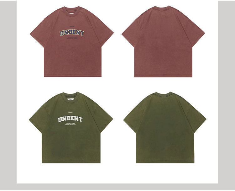 這款T恤使用了285G精梳棉紗線定織的全棉面料,這種材質不僅厚實挺闊,提供了超乎想象的舒適觸感,而且極具耐穿性,不易變形。每一件T恤都經過精心設計的水洗褪色工藝處理,呈現出不均勻的染色效果,這種獨特的做舊工藝讓每一件衣服都擁有獨一無二的復古韻味。