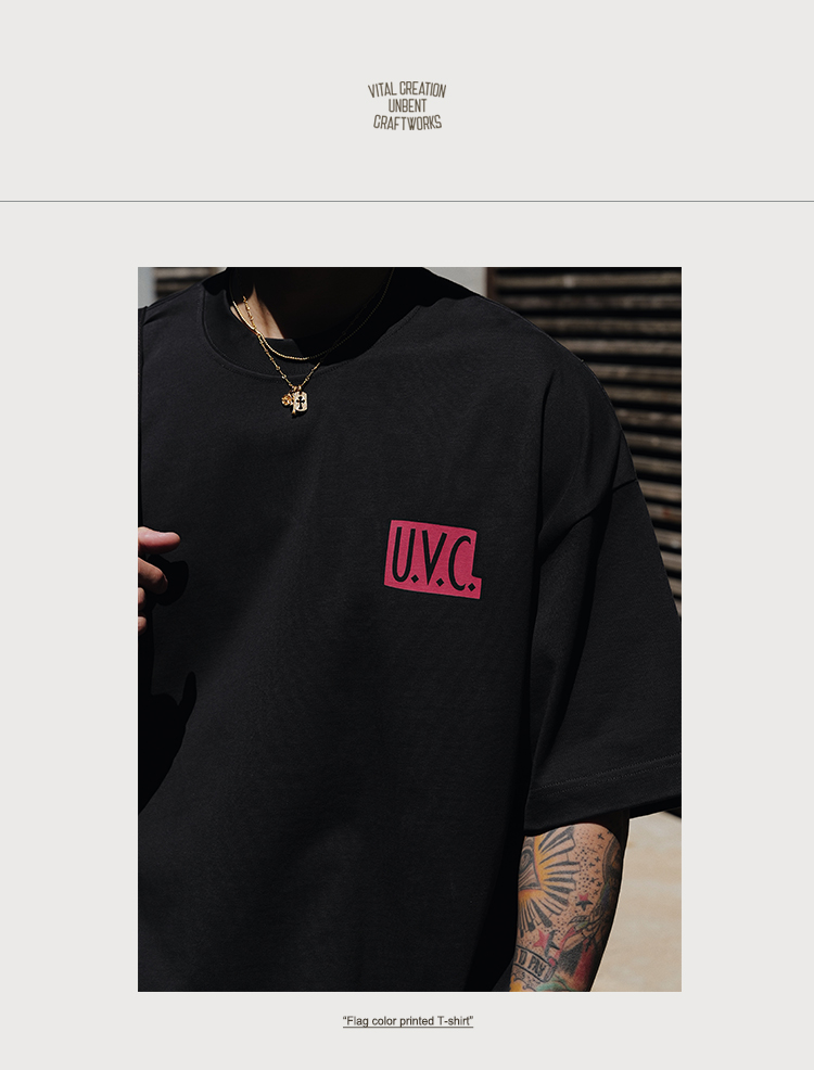 『老皮衣櫥』UNBENT-25202 UNBENT首選店家🏆 撞色印花短袖T恤 百搭 基礎 純棉 寬鬆 休閒 短袖T恤